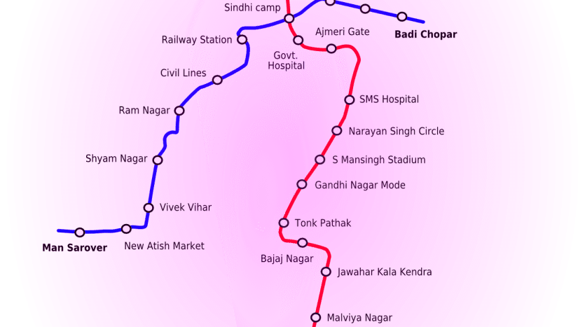 - The Pink Line Metro connects Badi Chaupar and Mansarovar.